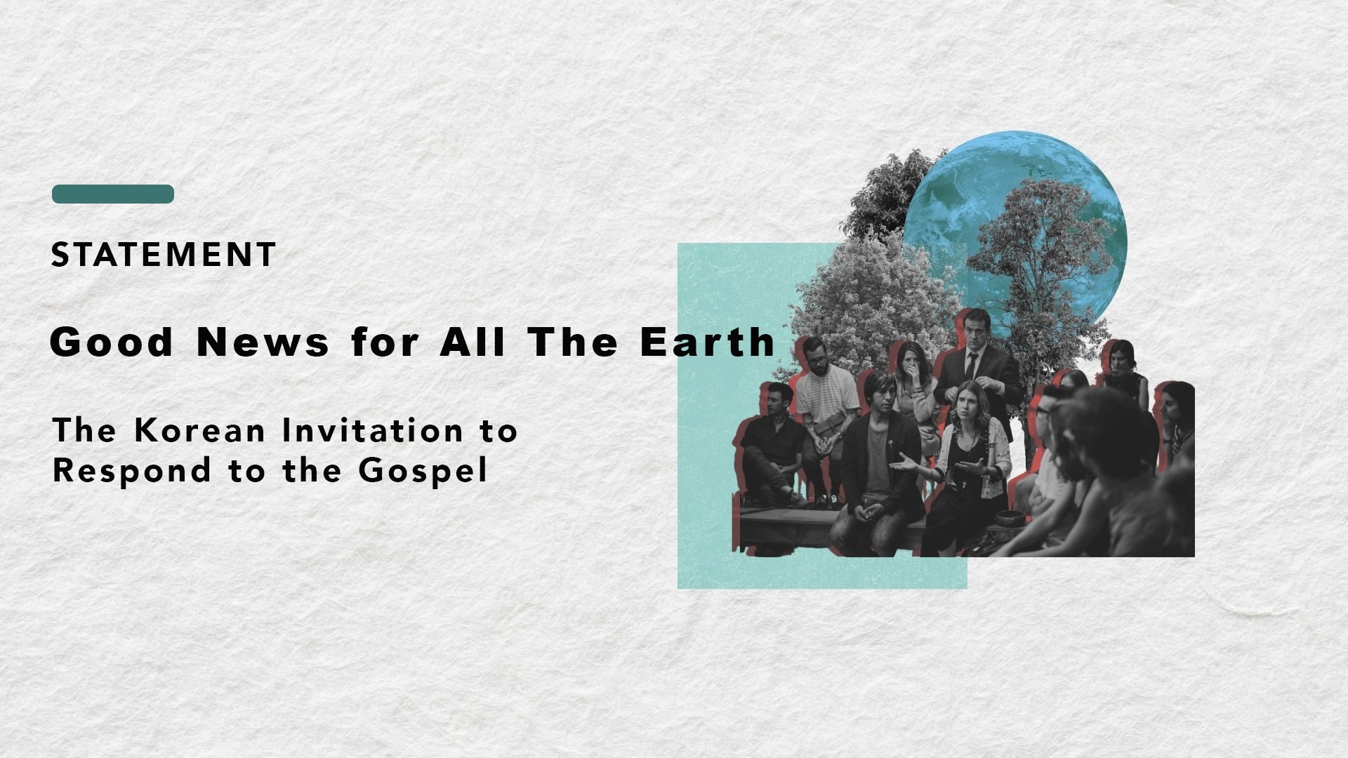 The Korean Invitation was drafted at the Global Creation Care Forum (GCCF) held in Gonjiam, South Korea, 28th September – 2nd October 2024. It was proposed by the leadership of the Lausanne / World Evangelical Alliance Creation Care Network (LWCCN), comprising Dave Bookless (UK), Jasmine Kwong (Philippines), Benita Simon Mendoza (Guatemala) – all Lausanne Catalysts for Creation Care, and Chris Elisara (USA/NZ) WEA Special Envoy for Environment, Climate, and Cities. The editorial group comprised Dave Bookless (UK), Rei Lemuel Crizaldo (Philippines & WEA Theology Commission), Sara Kaweesa (Uganda), Juliana Morillo-Horne (Colombia) and Laura Meitzner Yoder (USA). The content and structure of the Korean Invitation were discussed during several sessions of the GCCF and then continued using Google Docs, with input from nearly 150 in-person and online delegates during and after GCCF. Delegates were from 40+ countries in every inhabited continent, most of whom had also attended the 4th Lausanne Congress in Incheon, South Korea.